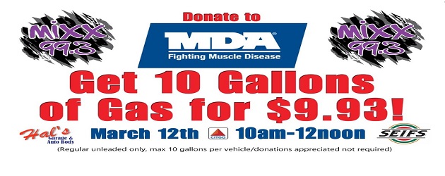 Join Mixx 99.3 at Hal's Citgo in Wakefield, 171 Tower Hill Road, Saturday March 12th 10-noon to help raise money for the Muscular Dystrophy Association!